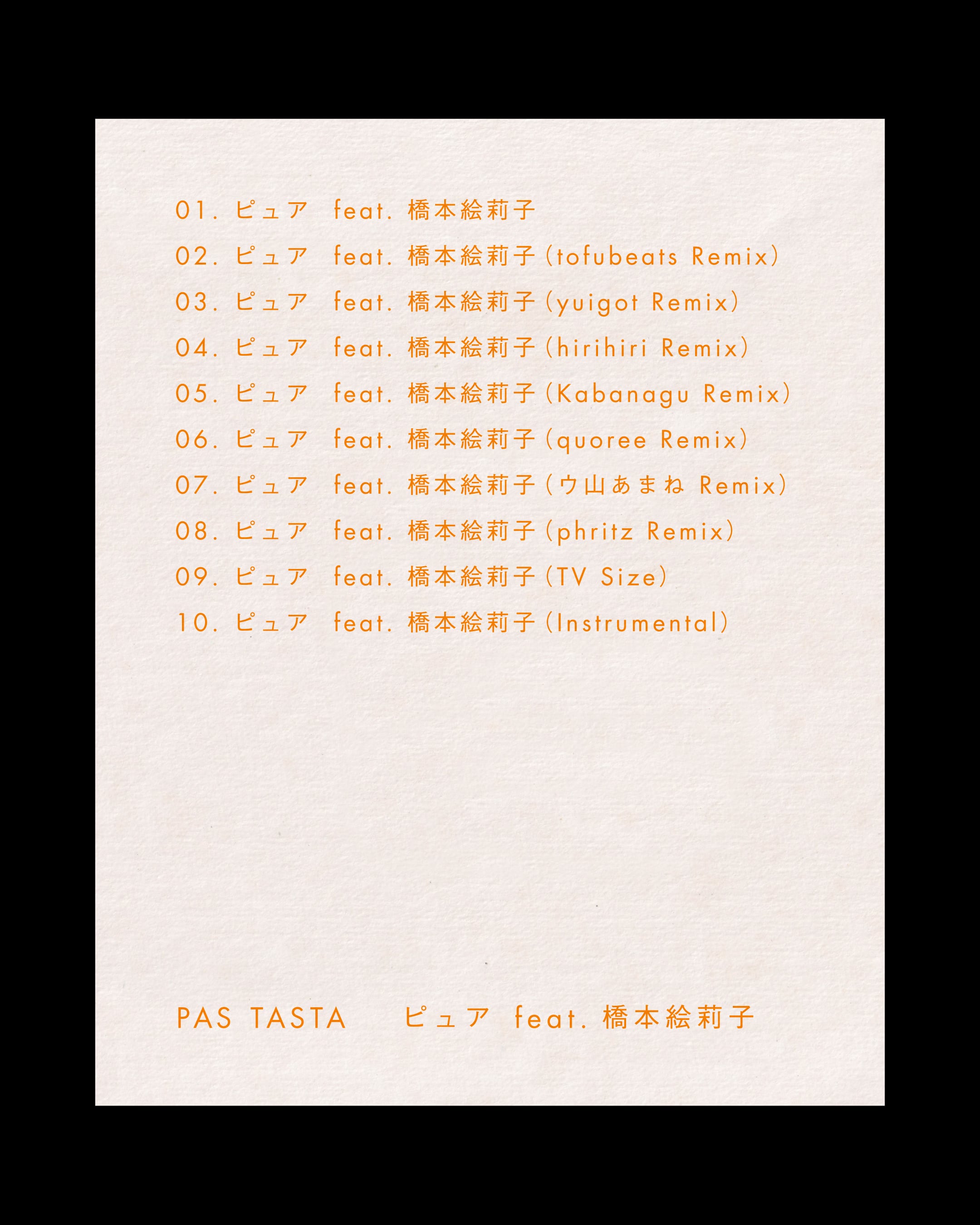 『ピュア feat. 橋本絵莉子』 特別版CDがPAS TASTA EC限定で発売!